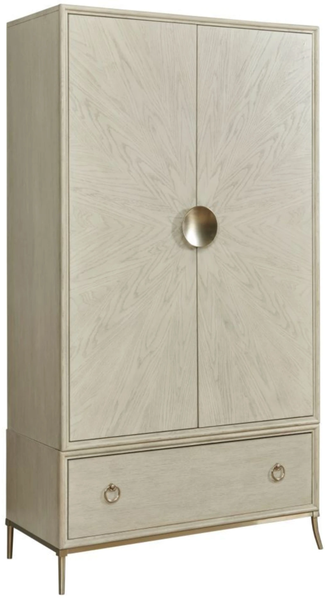 The Astral armoire features two doors, four drawers behind the doors; one drawer in the base. Two adjustable wood shelves and one fixed shelf. Adjustable levelers and cord exit hole.Read More