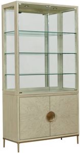 The Baltic cabinet features two doors on the base, an adjustable wood shelf. Adjustable levelers and hand holds in the back. The deck includes two glass doors, three adjustable glass shelves with plate grooves. Features curio ends, two can lights.Read More