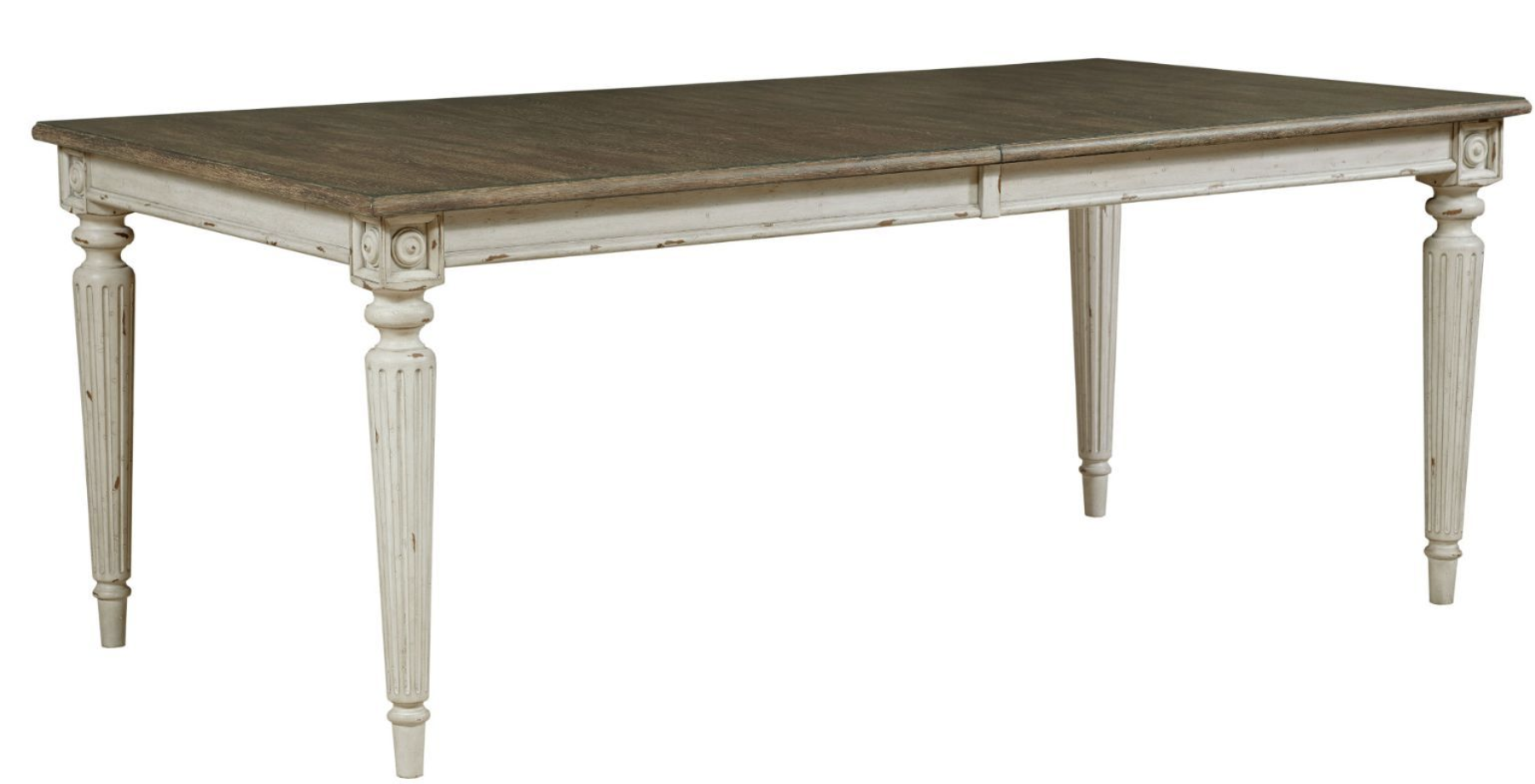 A beautiful rectangular dining table perfect for gatherings. Included two 20" leaves, a removable center leg and adjustable levelers. Reminiscent of a cottage in the European countryside, the Southbury furniture collection is both charming and elegant. Its inspiration comes from the gracefully aged painted antiques of a previous era.Read More