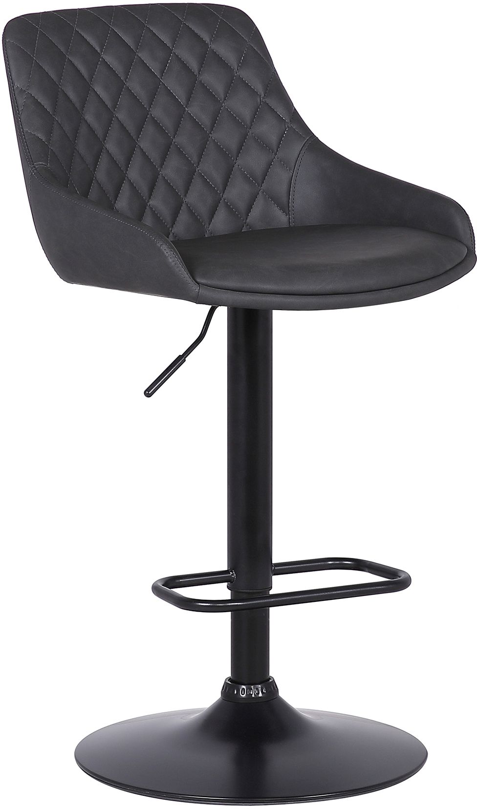 The Armen Living Anibal adjustable barstool is an excellent modern kitchen or home bar choice. The Anibal's durable Black Powder Coated Steel frame construction is inclusive of a circular base, convenient footrest for support, and easy to use height adjustment mechanism. Thanks to the Anibal's hydraulic lift, you can easily transform the stool from 26 inch counter to 30 inch bar height, allowing you to use it in just about any setting. The stool's durable Poplar wood supported seat features a low back and diamond textured Grey Faux Leather upholstery. The stool's foam padding assures a comfortable and relaxing user experience. An excellent choice for the modern home, the Anibal is certain not to disappoint.
