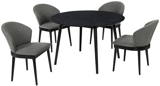 The Arcadia and Juno 48" Round Charcoal and Black Wood 5 Piece Dining Set is just what you need for your eat in kitchen or dining room. This 5-piece dining set will open your dining room with its clean, round table and modern chairs.Read More