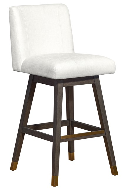 Entertaining is a breeze with the swivel mechanism. The 180-degree memory swivel or ‘spin-back’ seat allows you to swivel either way and the seat always returns to forward facing position when you stand up. The sturdy 4 leg base is constructed from rubberwood. Rubberwood is a durable hardwood belonging to the maple family. Its dense grain character makes it a stable construction material that is naturally resistant to fungus and bacteria. The wood base is further complimented by the soft upholstery. The long-term durability of polyester makes it an ideal choice of stool upholstery fabric for families with children and pets. Polyester upholstery is water-repellent, stain-resistant, budget-friendly, and less prone to discoloration. The combined features of the Basila counter or bar height stools make for an easy choice! This modern bar stool is available in your choice of a 26-inch or 30-inch seat height and comes in a brown oak wood finish with beige or taupe fabric, or a grey oak wood finish with grey or pearl fabric upholstery.