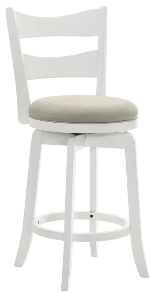 Choose between a creamy neutral or fog-gray cushion, perfectly paired with either a rich putty brown or crisp matte white wood finish. Crafted with sturdy rubberwood, these barstools are designed for everyday durability and long-lasting appeal. Each piece is finished with care to highlight the natural wood grain, offering a stylish foundation that blends beautifully with a wide range of interior styles. The smooth 360-degree swivel feature offers effortless mobility, ideal for entertaining or everyday use. No arms and a built-in footrest make these stools practical and easy to tuck under counters. From casual mornings to lively evenings, the Blair Barstool adds an inviting touch to your dining or gathering spaces..