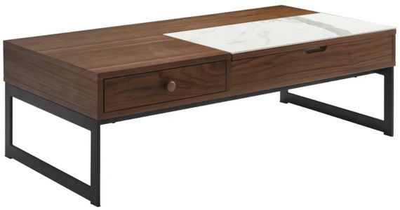 Elevate your living space with the Faye Lift-Top Coffee Table a beautiful fusion of form and function. Featuring a sleek walnut-finished wood frame, integrated storage, and a smooth sintered stone inlay, this rectangular table adds warmth and modern refinement to any room.Read More