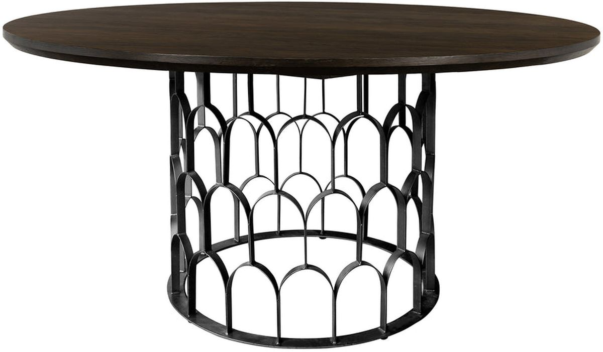 The Armen Living Gatsby Oak and Metal Round Dining Table is 55 inches in diameter and easily seats up to 4 people. This table features a beautiful metal base with a warm oak top allowing it to easily fit in to any current design theme in your home. The Gatsby Dining Table is also available with a concrete top.