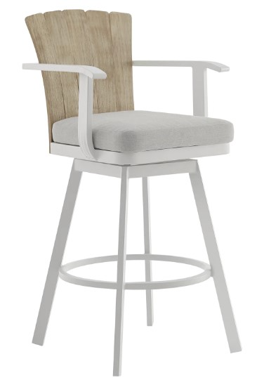 Crafted with precision, the Hazel Outdoor Patio Swivel Stool boasts a sturdy aluminum frame, ensuring both durability and a modern aesthetic that effortlessly complements your outdoor setting. Whether under the sun's warmth or facing unexpected rain, this stool stands as a steadfast and stylish seating solution for your patio or outdoor bar area. The teak wood accents introduce a touch of natural warmth and sophistication to the design, creating a harmonious contrast with the sleek aluminum frame. Paired with hook and loop removable cushions, the Hazel Swivel Stool invites you to relax in both style and comfort, providing an inviting seating option for outdoor gatherings. Whether you're enjoying a refreshing drink at the bar or a casual meal at the counter, the swivel feature of the Hazel Stool enhances mobility and social interaction, ensuring you can effortlessly engage with your surroundings. Elevate your outdoor entertaining experience with the Hazel Outdoor Patio Swivel Bar or Counter Stool in Aluminum. Its distinctive design not only enriches your patio but also provides a durable and stylish addition to your outdoor furniture ensemble.