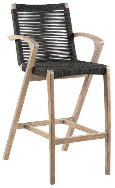 The Nabila Outdoor Patio bar and counter stools are available in your choice of grey rope with an Earth (dark) finish or charcoal rope with a teak (light) finish. Its solid eucalyptus frame naturally repels moisture and is cleverly shaped to imbue a floating armrest aesthetic. Wrapped in resilient regatta rope cording, the seat and back provide a remarkable level of comfort while still allowing the elements to pass through.