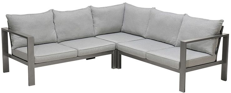 Enhance the comfort of your outdoor space with the addition of this Armen Living Solana Outdoor Sectional with Dark Frame and Grey Cushions. The sectional sofa features neutrally toned, 100-percent UV-resistant fabric upholstery for a natural aesthetic, and the set offers comfort and durability for years to come. The Armen Living Solana collection features outdoor dining chairs, dining and occasional tables and is available in a cosmos grey finish.
