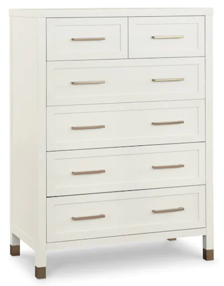 It's the little things that make the Tidewater Tall Chest as classic as it is essential. Its smooth, opaque Hampton White finish is both modern and timeless, with metal bar pulls and leg ferrules in a satin brass finish to add a touch of sophistication.Read More