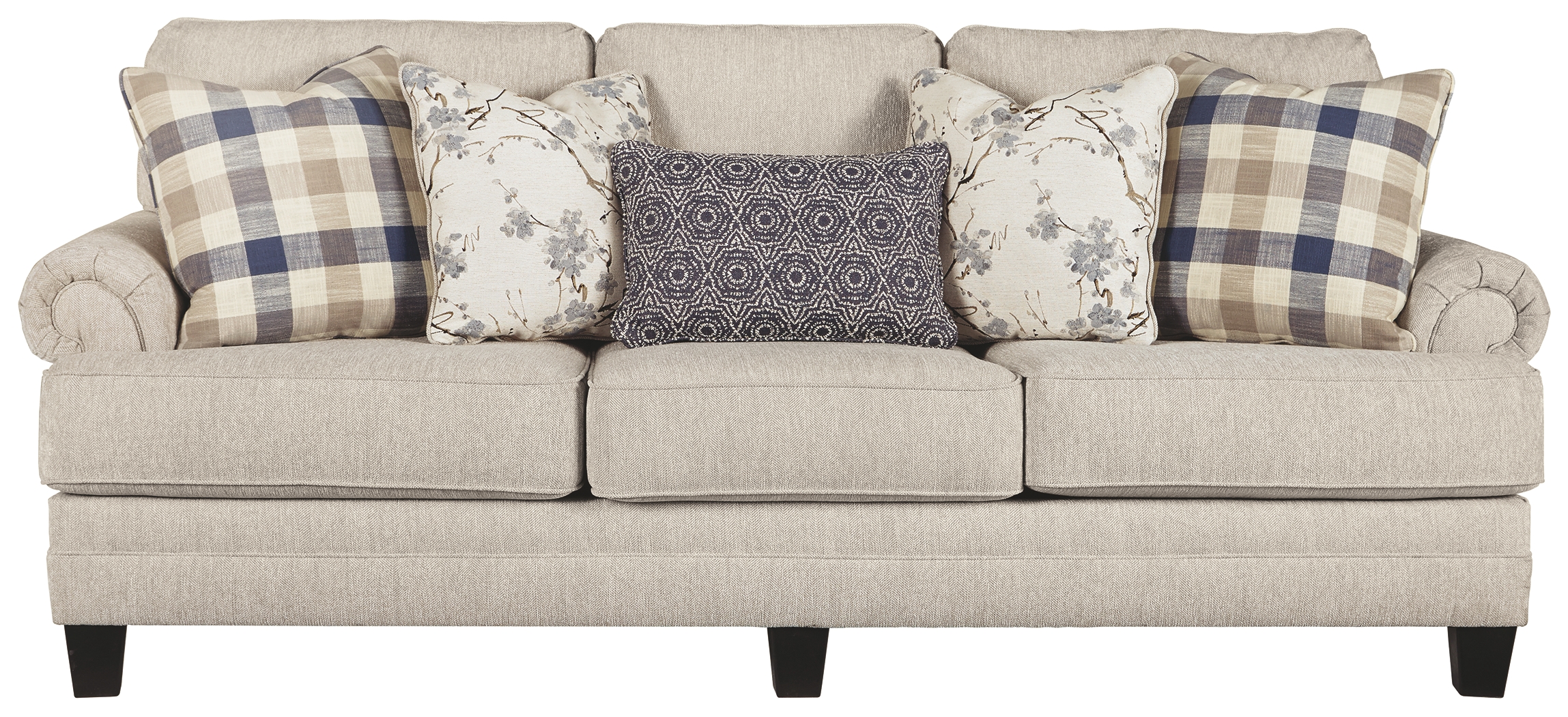Frame constructions have been rigorously tested to simulate the home and transportation environments for improved durability. Frame components are secured with combinations of glue, blocks, interlocking panels and staples. Seats and back spring rails are cut from mixed hardwood and engineered lumber. Stripes and patterns are match cut. All fabrics are pre-approved for wearability and durability against AHFA standards. Cushions are constructed of low melt fiber wrapped over high quality foam. Constructed with a platform seat foundation. Toss Pillow with welt.