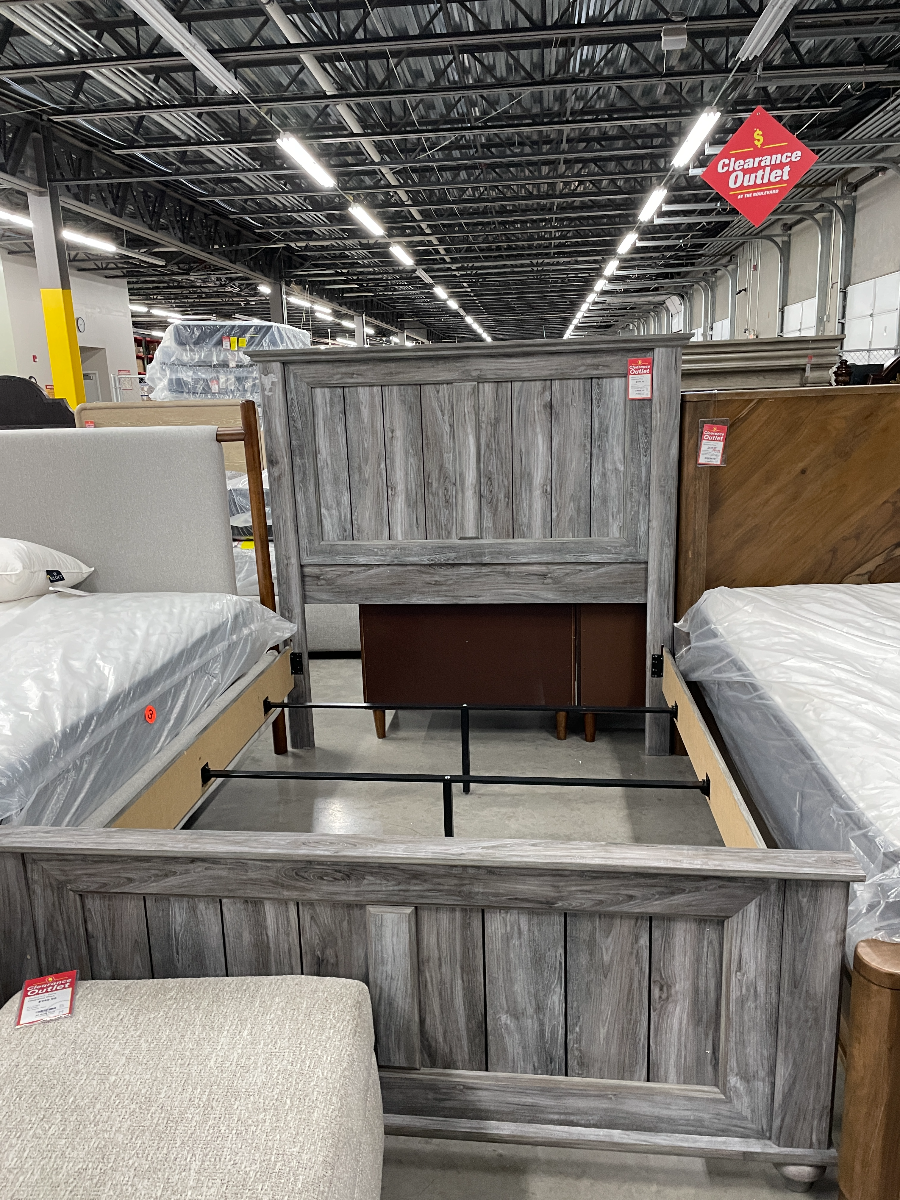 *As is item* Item has been used as a previous floor model. You'll be swept away by the easy-breezy driftwood look of this queen panel bed. An alluring smoky gray finish brings an ethereal vibe to your serene bedroom suite. This large-scaled bed delights with traditional details in a warm, weathered hue. It's what's new in neutrals.Read More