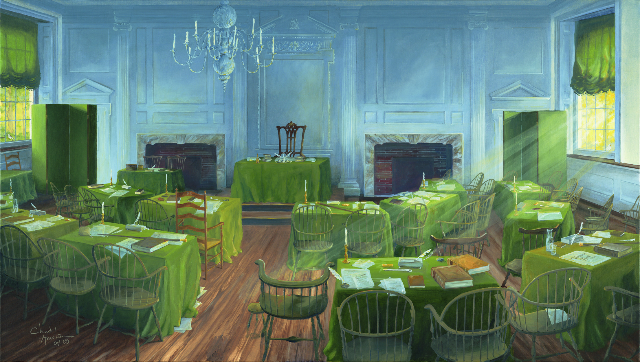 17" x 30" art piece of the Assembly Room by Chad Hawkins