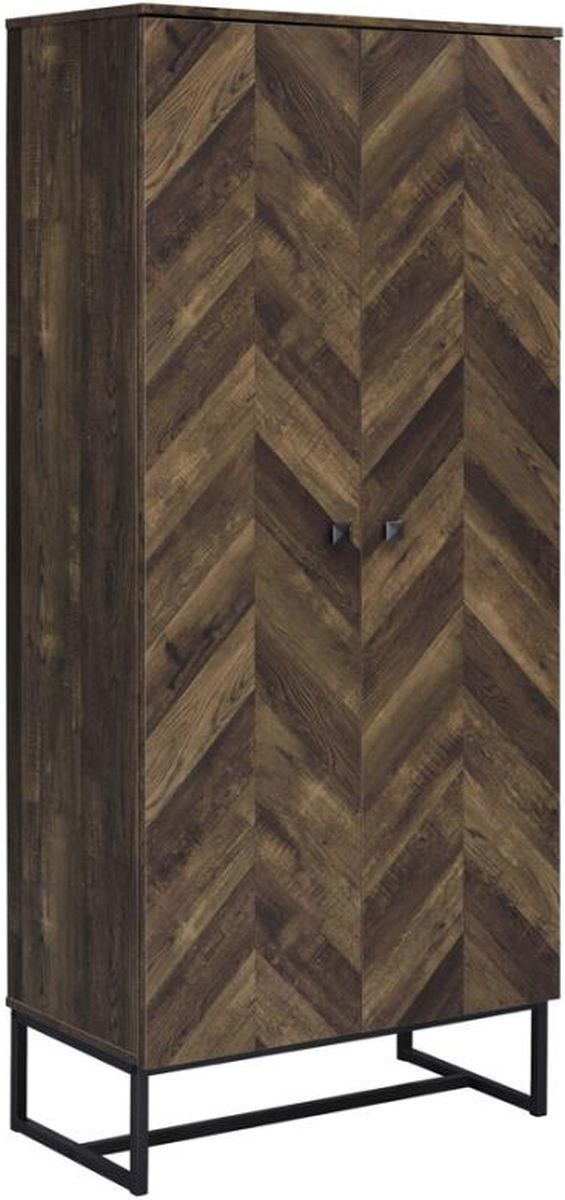 Covered in a rustic oak finish with a weathered herringbone pattern across the front, this tall, contemporary accent cabinet lends itself perfectly to a modern farmhouse living room, home office and more.Read More