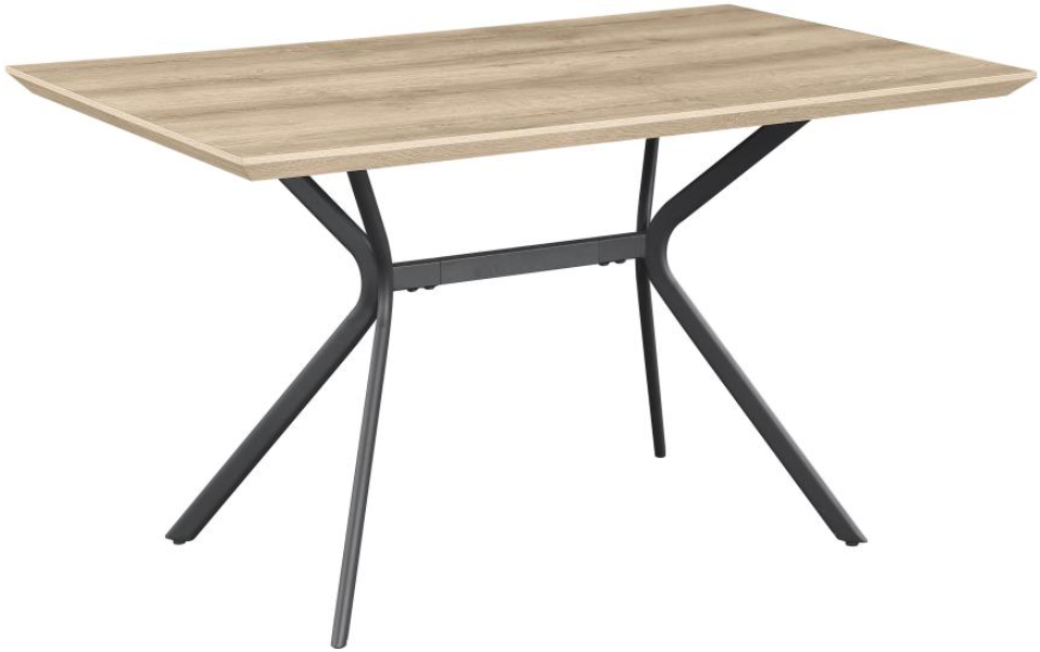 Flared V-shaped table legs are made from metal and feature a contrasting black finish