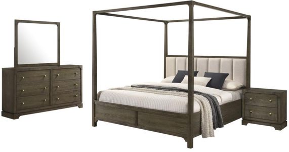 Create a sophisticated retreat in your bedroom with this bedroom set. Featuring a transitional design with rounded corners and trending details, this set includes a canopy bed, nightstand, dresser, mirror, and optional chest.Read More