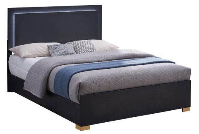 Enjoy the ethereal ambiance created by energy-efficient lighting framing its tall headboard, easily controlled through headboard-mounted touch buttons