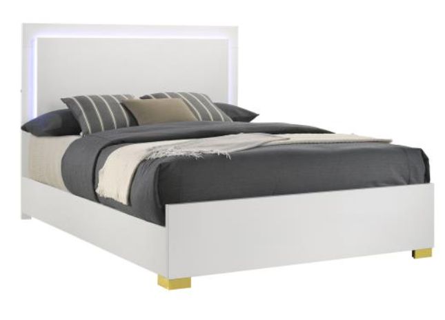 Enjoy the ethereal ambiance created by energy-efficient lighting framing its tall headboard, easily controlled through headboard-mounted touch buttons