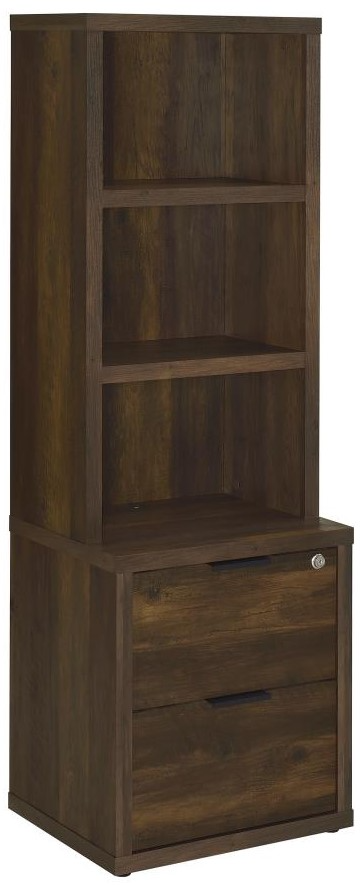 Bookcase with a dark pine-inspired wood grain finish