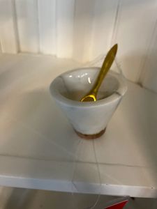 Creative Co-Op 3" pinch pot with spoon. *As is item* Item is unused, however item has had the bottom repaired. Item#AH3352ARead More