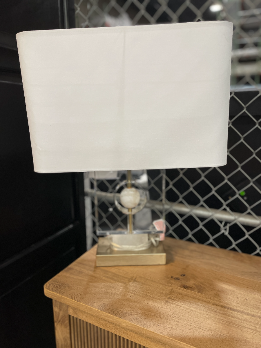 *As is item* Item is missing a part and has a non-stock shade. Elevate your living room design with this Yates table lamp from Crestview Collection. Shown in an antique brass finish with a white rectangular linen shade. Make a bold statement by incorporating this stunning lamp into your home.Read More