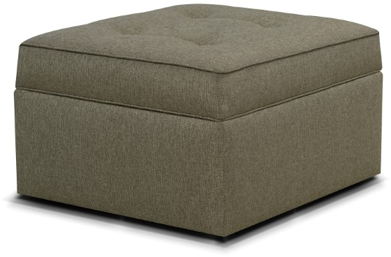 Walker Storage Ottoman with hidden casters and simple welted top. The petite casual storage ottoman features a simple welted top accented with four decorative buttons. Its style will work well with a wide variety of decor... just cover it to match! Take a look at Cohin to see the leather version.