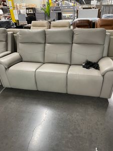 *As is item* Item has been returned and has some marks. A versatile showstopper, the Vernon power reclining sofa has everything you need for ultimate comfort. Its sleek, modernized silhouette is upholstered in a family-friendly, leather-like fabric with CloudLux™ down alternative seat toppers and headrests that will put you on cloud nine.Read More