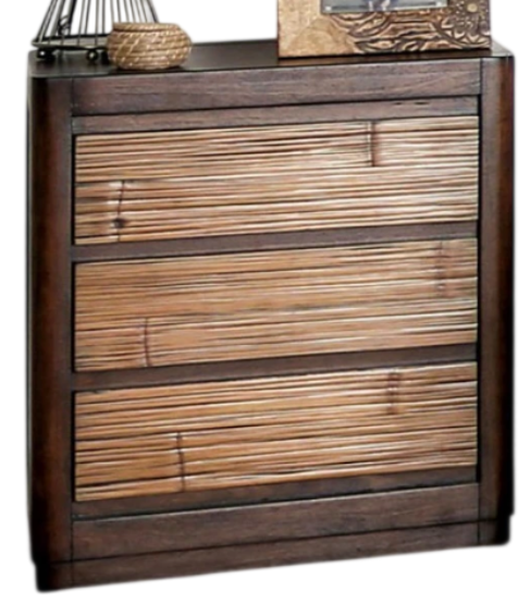 Island auras are such a welcome addition to a bedroom. The warm and calming reminder of summer days on the beach can be had with this gorgeous bedroom collection. Bamboo panels cover the drawer faces for a worldly look. Darker framing helps emphasize the wood grain details.Read More