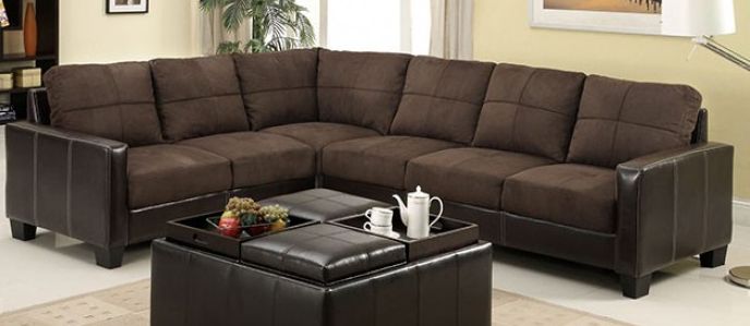 This two toned sectional has soft comfortable seating and is trimmed in espresso leatherette. Paired with either a tan or espresso elephant skin microfiber, it looks great as an addition to any contemporary style home.Read More