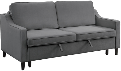 The Adelia presents as a unique seating option for your household. The pull-out bed and click-mechanism seat back of this sofa engage to create a platform for sleeping or relaxing. The seatback cushions are removable as well as reversible. Offered in dark gray velvet cover for neutral decorative placement and soft touch.Read More
