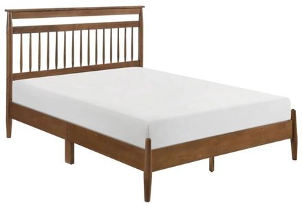 The wood frame bed is finished in a chestnut hue, its classic shade a versatile decorative addition to your space. The subtle nod to Arts & Crafts style furthers its timeless look.
