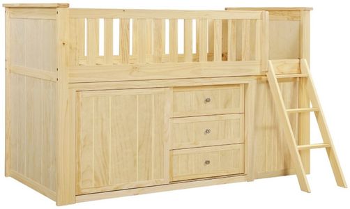 Maximizing sleep space is achieved with the stylish Bartly Collection. This transitional twin low-loft bunkbed is featured in a natural pine finish making it an appropriate choice for a number of youth bedroom settings. An angled ladder provides easy access to the loft platform.Read More