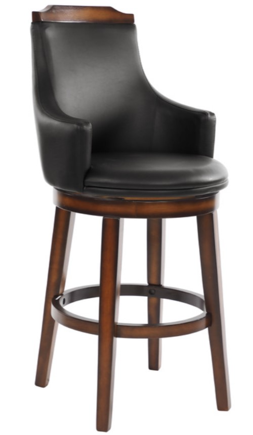 Transitional aesthetic meets modern lines in the casually elegant Bayshore collection. The chair features dark brown faux leather with wood cap and legs. Make a bold statement to your dining or living area.Read More