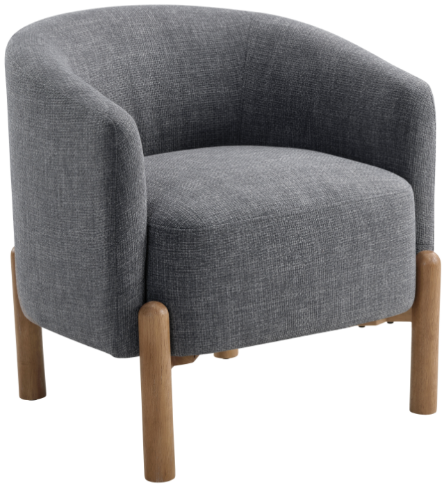 The textured gray fabric upholstery adds a touch of modern sophistication, while the attached back and seat cushions offer a clean, tailored look. The solid wood legs in a light brown finish provide a warm and stylish foundation, complementing any décor. With a 300lb weight capacity and easy assembly, this chair is perfect for adding a cozy and elegant touch to your living room, bedroom, or reading nook.
