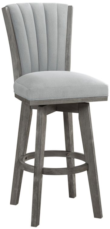 Meeting the needs of your tabletop height, the 29-inch bar-height chair allows for perfect placement within your casual dining space. The wood frame of the chair is finished in gray while the seat and vertical stitch-tufted back are covered in gray velvet.