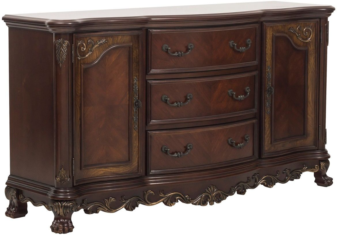 Walking into the dining room that is occupied by the Deryn Park Collection will immediately invoke your love of the traditional aesthetic. Stately from every angle, sophisticated design elements blend to create this beautiful server, which provides ample display and storage space for your tabletop accessories.Read More