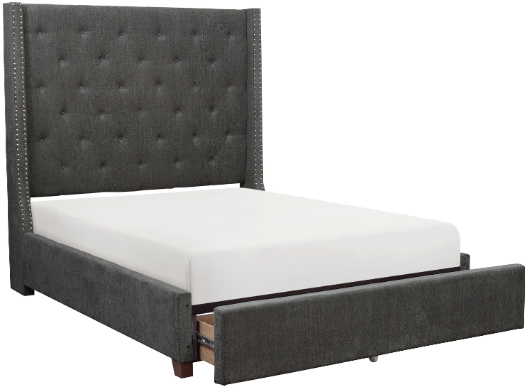The stately profile of the Fairborn Collection will lend an air of understated elegance to your bedroom. The full mansion headboard features nailhead accent and button tufting creating a modern traditional look that defines your personal style. Gray fabric covers the bed, providing neutral complement to your decorative bedding.Read More