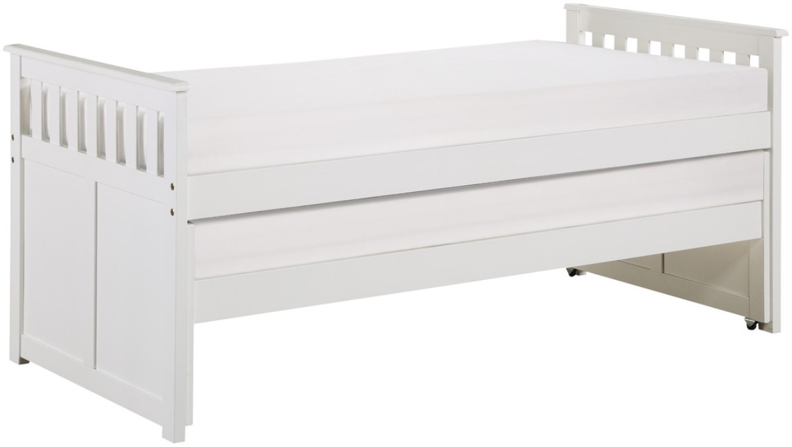The Homelegance® Galen Twin/Twin Trundle Bed features white finish, a pull-out trundle bed with casters, and is made from wood and engineered wood. Maximizing sleep space is achieved with the stylish Galen Collection.Read More