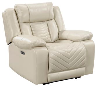 Indulge in ultimate comfort and modern convenience with our luxurious power recliner. Upholstered in premium faux leather, this recliner boasts a stylish V-pattern stitching detail and is designed for relaxation. With one-touch power control, you can effortlessly adjust to your favorite reclining position, while the built-in charging port keeps your devices powered up.Read More