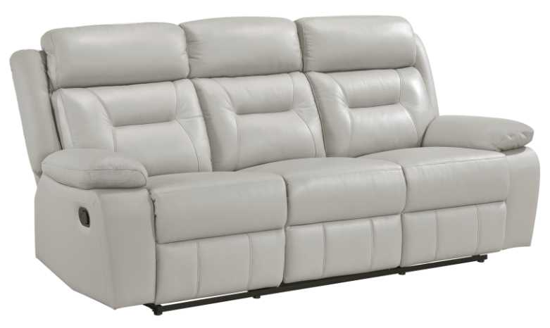 The transitional frame of the sofa is covered in 100 percent top grain leather where the body touches, with faux leather covering the remaining areas, its silver hue complementing your home’s décor.