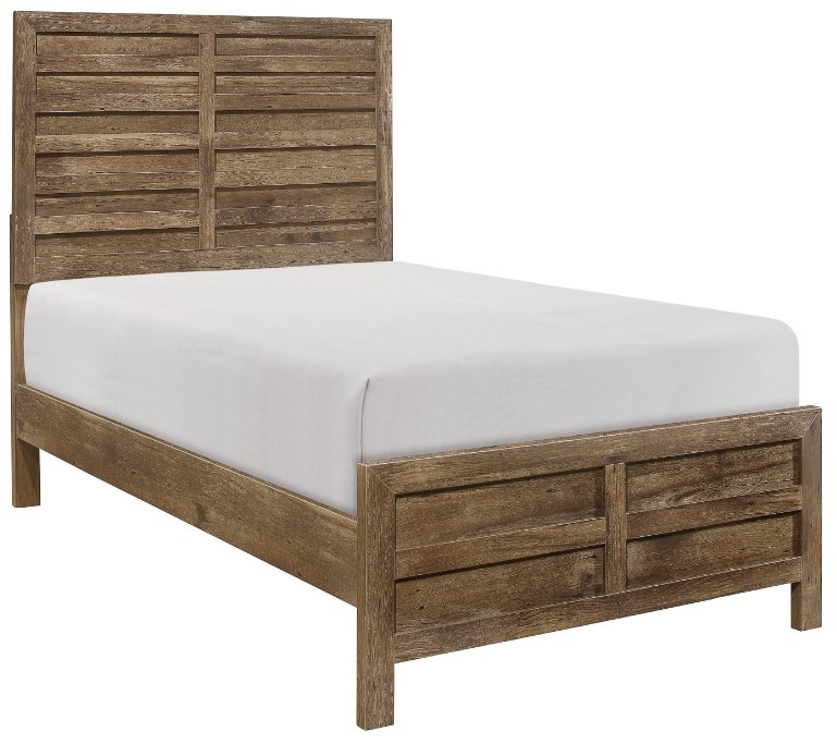 The modern lines of the Mandan Collection are blended with transitional aesthetic to create a unique offering for your bedroom. Utilizing faux wood veneer creates the look of authentic wood planks with the weathered pine finish further lending to the rusticated style of the Twin size bed.Read More