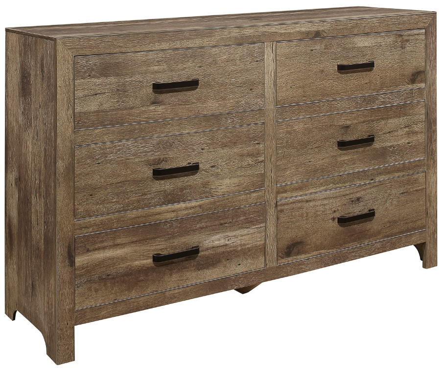 The modern lines of the Mandan Collection are blended with transitional aesthetic to create a unique offering for your bedroom. Utilizing faux wood veneer creates the look of authentic wood planks with the weathered pine finish further lending to the rusticated style.Read More