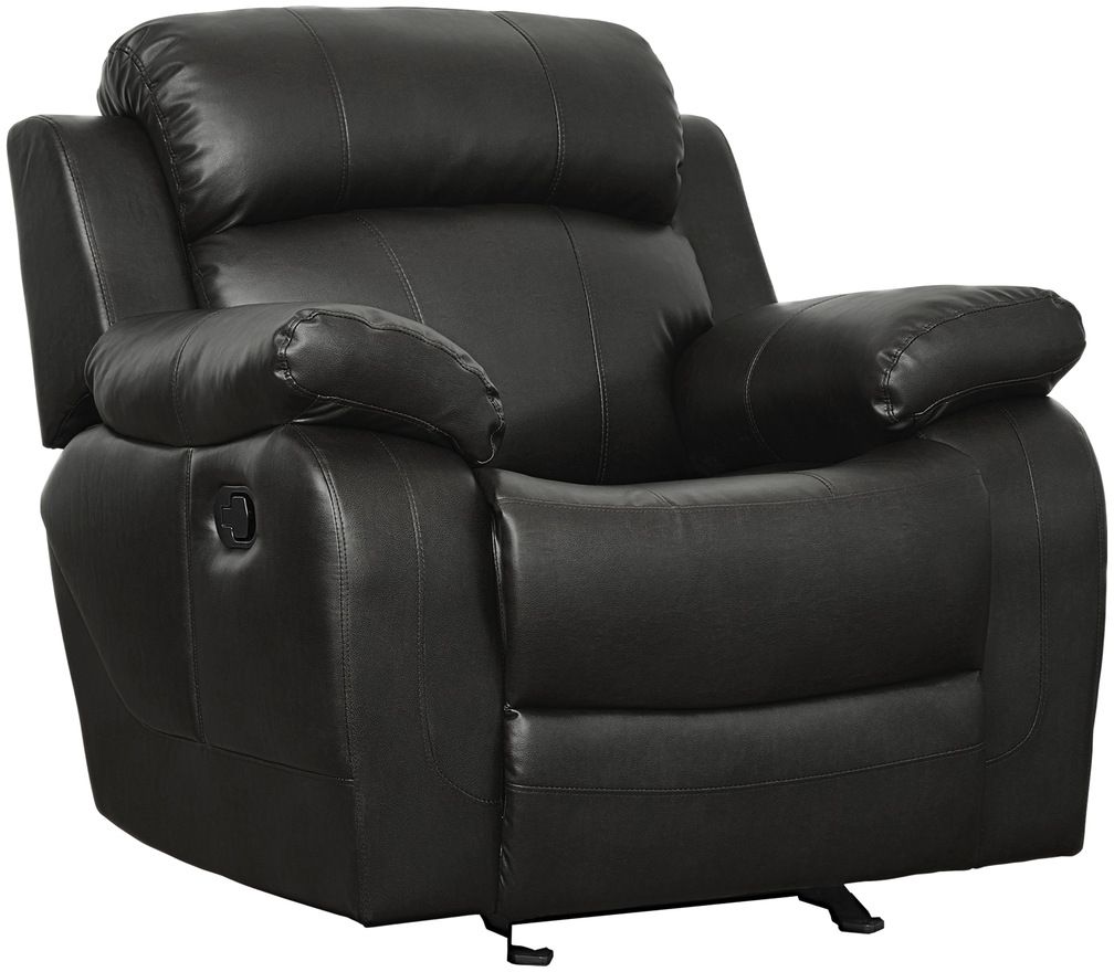 With the soothing rock of the reclining chair, your comfort is taken care of in the Marille Collection. The collection is offered in black faux leather, featuring plush cushioning, pillow-top arms, and smooth reclining mechanisms that invite you to relax effortlessly, blending both contemporary style and lasting comfort.Read More