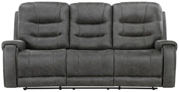 A subtle modern profile is combined with plush seating to create the design of the Oberon collection. The sofa features dual reclining ends. Manual motion mechanisms allow for your reclined experience and are engaged with a pull of the side mounted tab. Dark gray polished microfiber covers the collection.Read More