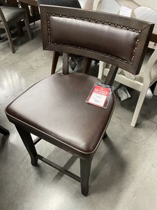 *As is item* Item has been returned and is scratched. Designed for your home’s rustic aesthetic, the Oxton Collection provides an ample platform for your mealtime and social activities. Contoured-back, wood-framed, 24-inch height chair features a contoured-back, wood framing, nailhead accent and espresso faux leather seats.Read More