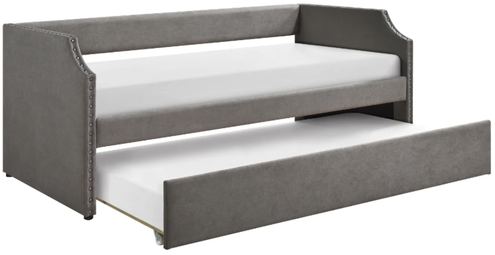 Modern traditional styling blends classic accent and clean lines to create the look of the Shiloh Collection. The dark gray textured fabric of the daybed is accented with nailhead detail that defines the profile of the piece.Read More