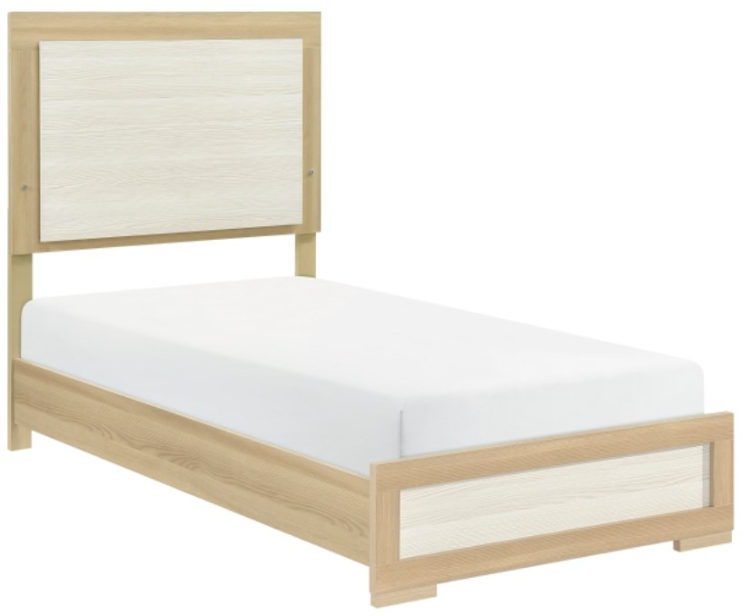 Bring a touch of fresh, modern style to your bedroom with the twin bed frame. Featuring a striking two-tone finish in natural wood and crisp white, this bed frame creates a bright and inviting focal point. Crafted from a durable combination of 3d paper, premium melamine board, wood, and engineered wood.Read More