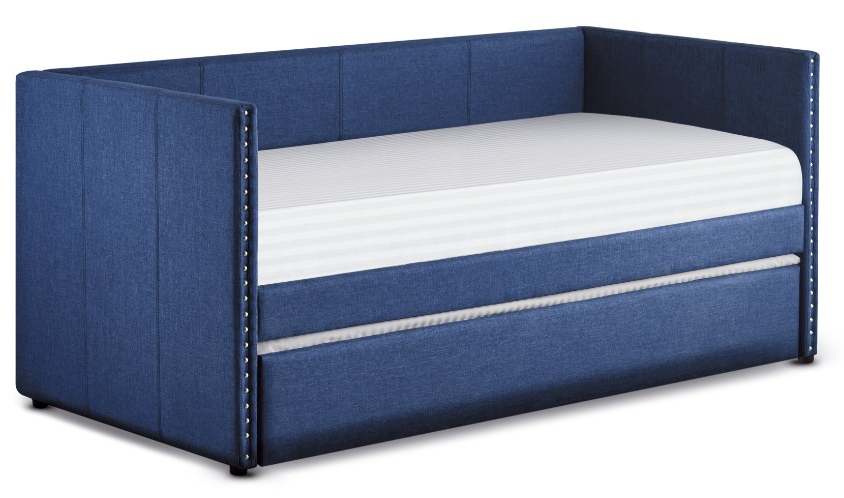 The blue fabric covering of the Therese collection is blended with nailhead accent and clean lines, creating a look that compliments your home decor. Whether used for sleeping or relaxing, the clean-line daybed design allows for placement in a number of room sizes and configurationsRead More
