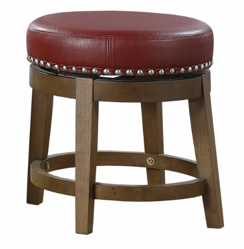 Transitional styling paired with versatility of selection makes the Westby collection a perfect addition to your home’s casual dining spaces. The round, swivel seat, stool is presented at 18-inches. The brown finished wood legs complement the red faux leather seat which features nailhead trim that further defines the stool’s round profile.Read More