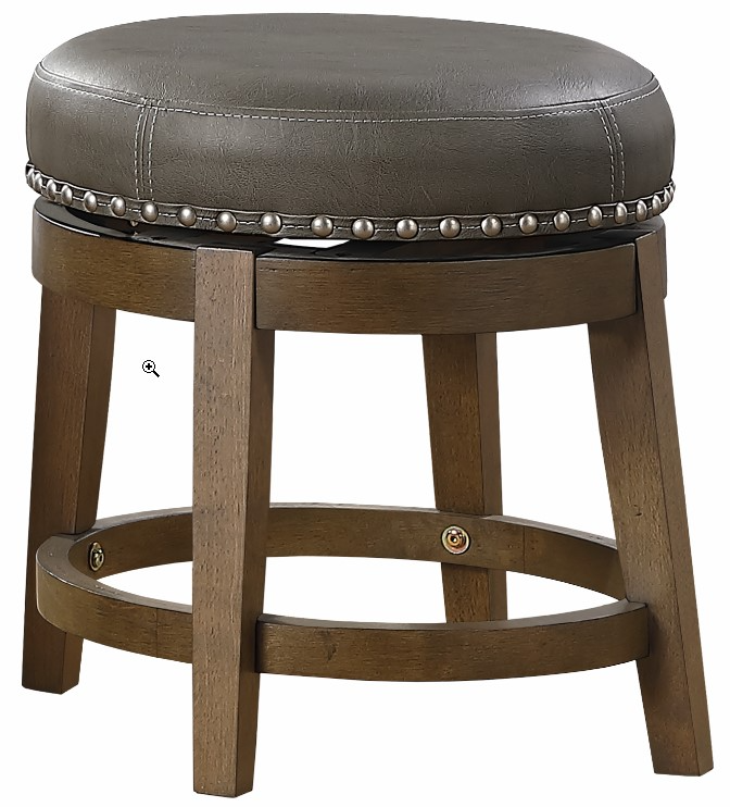 Transitional styling paired with versatility of selection makes the Westby Collection a perfect addition to your home’s casual dining spaces. The round, swivel seat, stool is presented at 18-inches. The brown finished wood legs complement the gray faux leather seat which features nailhead trim that further defines the stool’s round profile.Read More