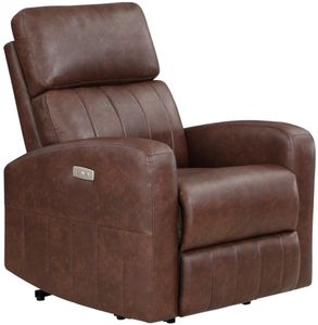 The lift chair is offered in dark brown breathable faux leather upholstery, the neutral hue complementing the transitional design of the collection.
